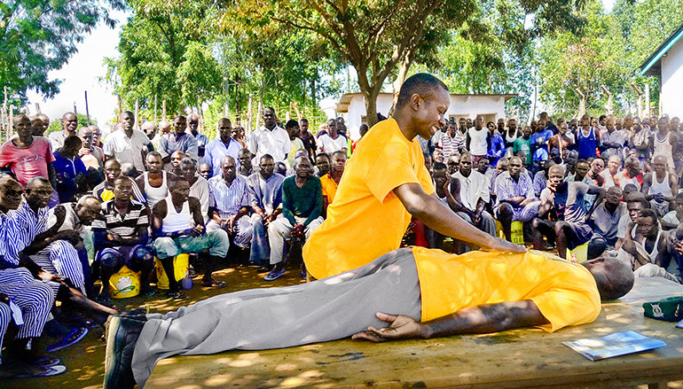 Los funcionarios de la prisión continuaron proporcionando ayuda personal a los reclusos basada en las destrezas que han aprendido. En un seminario reciente, los oficiales le demostraron a los reclusos cómo ayudarse los unos a los otros dando ayudas de Scientology, técnicas desarrolladas por el Sr. Hubbard que aceleran la velocidad de curación por medio de dirigirse a los factores espirituales en el trauma y el estrés. Ellos entregaron a 12 reclusos lesionados y los 12 sintieron alivio. Okello se reunió con los líderes del grupo de VM de Siaya, que ahora han decidido llevar a cabo clínicas mensuales en la cárcel, donde ellos proporcionarán ayudas y continuarán usando la tecnología de los Ministros Voluntarios para asesorar a los reclusos.