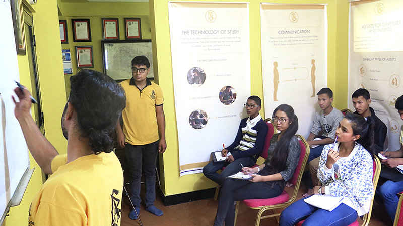 Entre limpiar casas demolidas, servir agua limpia y organizar controles sanitarios gratuitos en los 17 distritos (labor de respuesta que no han abandonado), los Ministros Voluntarios al mismo tiempo fortalecen la siguiente generación de Nepal construyendo su capacidad para aprender. Visitando docenas de escuelas en Nepal, los Ministros Voluntarios han impartido seminarios sobre la Tecnología de Estudio de Scientology, revolucionarias herramientas para superar las principales barreras a la comprensión y dominar cualquier tema.
