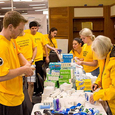 La Iglesia de Scientology de México se convirtió rápidamente en el cuartel general de Los Topos y otros que estaban respondiendo al desastre. Allí, los VMs recibieron, organizaron y distribuyeron unas 96 toneladas de suministros donados, con los cansados socorristas durmiendo brevemente y recargando baterías entre turnos de 8.5 horas de trabajo físico agotador.