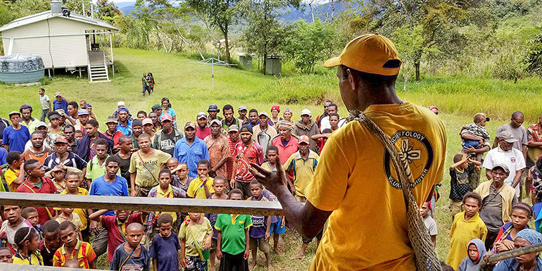 El 26 de febrero del 2018, un terremoto de magnitud 7.5 golpeó Papúa Nueva Guinea (PNG), tomando por lo menos 67 vidas y dejando a su paso unas 194 réplicas. Más de medio millón de personas se vieron afectadas, más que todo cerca del epicentro del terremoto. Augustine Brian, el Director de Juventud por los Derechos Humanos de Papúa Nueva Guinea (un programa que también es patrocinado por la Iglesia de Scientology), pidió ayuda. Poco después, el equipo de respuesta en el desastre de los Ministros Voluntarios llegó a Papúa Nueva Guinea, listos para trabajar.