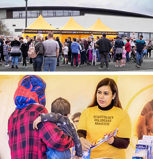 Las carpas de Ministros Voluntarios de Dublín ahora se establecen semanalmente, incluso en el hipódromo Fairyhouse. Las carpas han sido tan populares que la gente a la que se le dio las herramientas de Scientology y las ayudas regresan la próxima vez, dondequiera que esté la carpa, para informar sobre cómo les va y cómo están aplicando la tecnología para mejorar sus vidas.