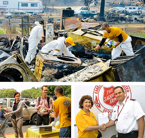 En la Iglesia Bethel, los Ministros Voluntarios se organizaron para llevar a cabo “Extracciones de entre las cenizas”, donde se fueron con familias a sus casas chamuscadas y les ayudaron a encontrar ítems memorables perdidos que se pudieran salvar. En una casa, el propietario había perdido muchos objetos de valor y antigüedades, pero se llevó una agradable sorpresa cuando los Ministros Voluntarios fueron capaces de recuperar algo de su porcelana china completamente intacta. Un vecino cercano dijo que era la primera vez que lo había visto sonreír en las dos semanas desde la evacuación.